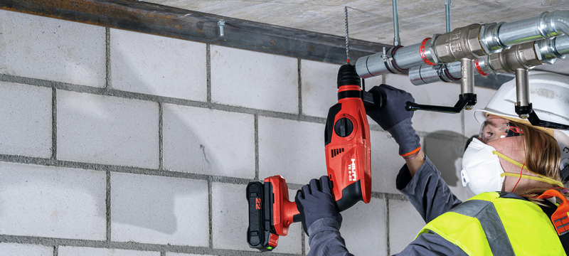 - Virtually dust-free drilling – when used with a Hilti DRS-D or DRS-S dust removal attachment or hollow drill bit and compatible Hilti vacuum cleaner