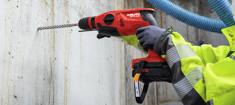 - Unbeatable grip and agility – TE 2-22 is our lightest and slimmest cordless rotary hammer, with improved in-line pistol grip designed to help you work in cramped quarters without the muscle strain