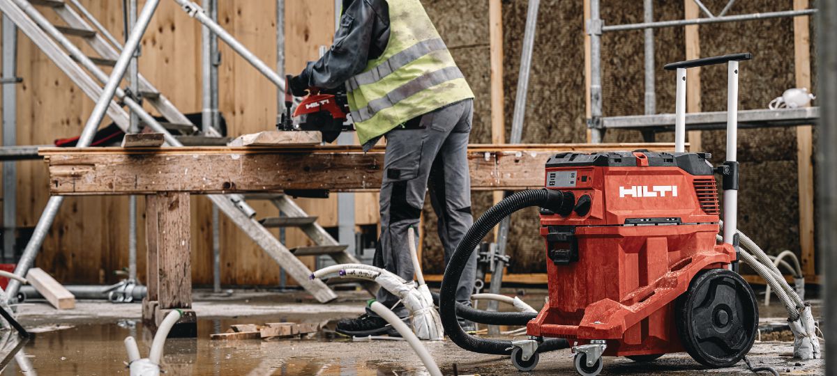 - Sturdy L-class dust extractor built for construction work – integrated push-bar for mobility over longer distances and extra-durable components to withstand the harshest jobsite conditions